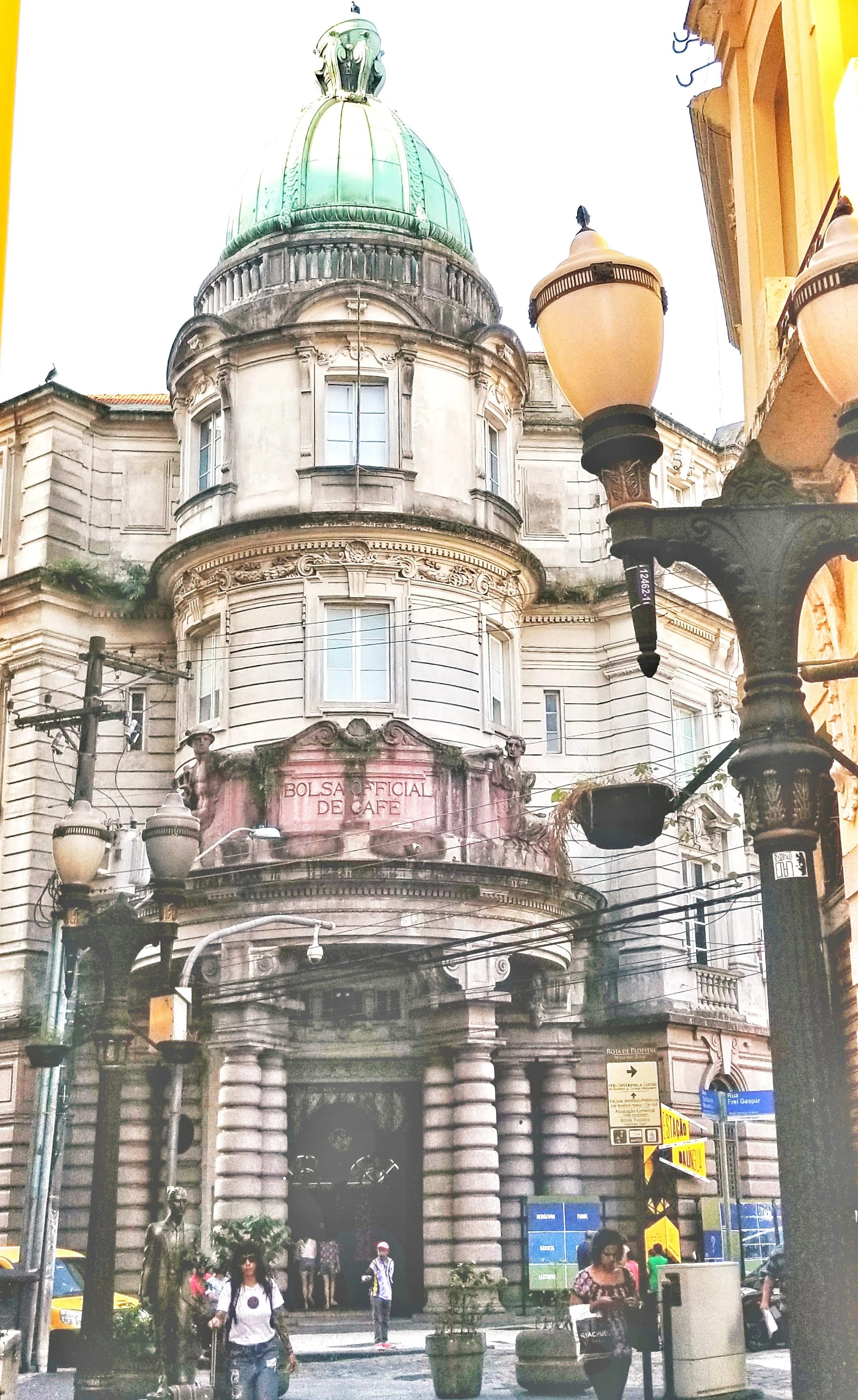 by early 1800's brasil is the world's major producer distributor of coffee. in 1922 This Cafe Bolsa or 'growers market building is a neo-classical design. in santos, south america's largest shipping port. by 1950 the bolsa is moved to sao paulo 1-hour north..